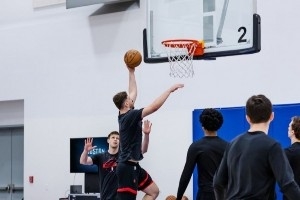 24直播网4月21日讯 火箭官方发布了今日的训练照,上一场因伤缺席的杜兰特参加了训练,老将范弗里特也现身,在指导阿门·汤普森。
