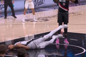 本场比赛次节8分57秒,文班在一次进攻中失衡倒地,下巴和侧脸狠狠摔在了地板上,文班随后想要起身没起来,坐在地上很痛苦,缓了很久,随后自己起身之后返回更衣室。