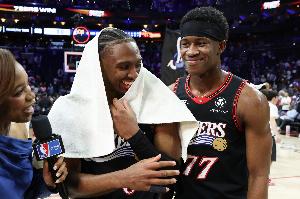 24直播网4月22日讯 在今天结束的一场季后赛中,76人以111-97战胜凯尔特人。赛后,76人球员VJ·埃奇库姆接受了媒体的采访。