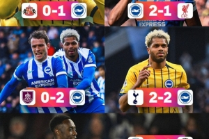 据英超官方统计,布莱顿近5场英超比赛战绩4胜1平,拿到13分,其中包括战胜利物浦和切尔西。