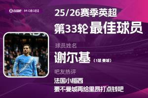 2025-2026赛季英超火热进行中,24直播网和咪咕体育联合发起每轮英超最佳球员评选活动!第33轮评选结果已经出炉,曼城中场谢尔基连续2轮当选,本轮评选获得吧友38178张票,得票率56.4%!
