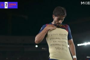 比赛第56分钟,费兰接佩德里传中凌空爆杆破门,但随后VAR介入判罚佩德里传球时,费兰越位在先,进球无效。