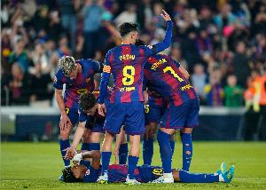 24直播网4月23日讯 西甲第33轮比赛,巴萨主场1-0击败塞尔塔,亚马尔此役点射破门,但因伤离场。