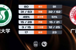 末节比赛,依哈帕力先中三分,席浩诚里突外投连得5分,广西大学稳扎稳打牢牢占据场上主动,三峡大学连投带罚苦苦追赶,殷腾飞再中三分,无奈时间所剩无几。最终,广西大学91-80击败三峡大学。