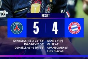 24直播网04月29日讯 欧冠半决赛巴黎5-4战胜拜仁,两队本场比赛只用了68分钟就一共打进9球。