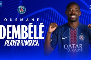 24直播网4月29日讯 欧冠半决赛首回合,巴黎圣日耳曼5-4拜仁。登贝莱首发出战,赛后被评为全场最佳球员。