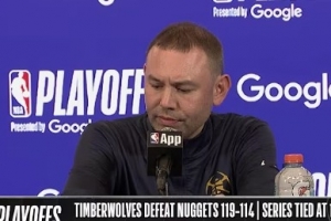 24直播网4月21日讯 NBA季后赛,掘金(1)114-119不敌(1)森林狼。赛后掘金主帅阿德尔曼接受了媒体采访,以下为采访全文。