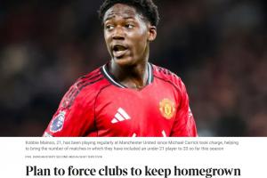 24直播网04月29日讯 据《泰晤士报》报道,国际足联正在正在审议一项激进计划,拟要求所有球队始终至少有一名本队青训出身的U21球员在场上,本赛季没有任何英超球队做到这一点。