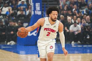 前三节,活塞球星坎宁安高效发挥,出场31分钟19投11中,三分7中5、罚球10中10砍下37分4篮板1助攻,有4失误,正负值+6。