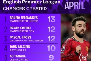 英超4月创造机会榜:
